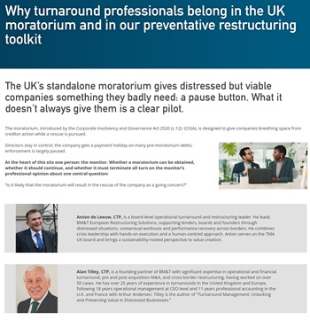 TMA is all about connection: connecting members with each other, with ideas, and with the broader business community. Showcasing member insights is one of the many ways we elevate our collective expertise and strengthen the profession. These articles represent original thought leadership from TMA members—practitioners, advisors, and experts shaping the future of turnaround, restructuring, and corporate renewal. This platform is exclusive to TMA members and reflects the depth, diversity, and practical insight of our community.